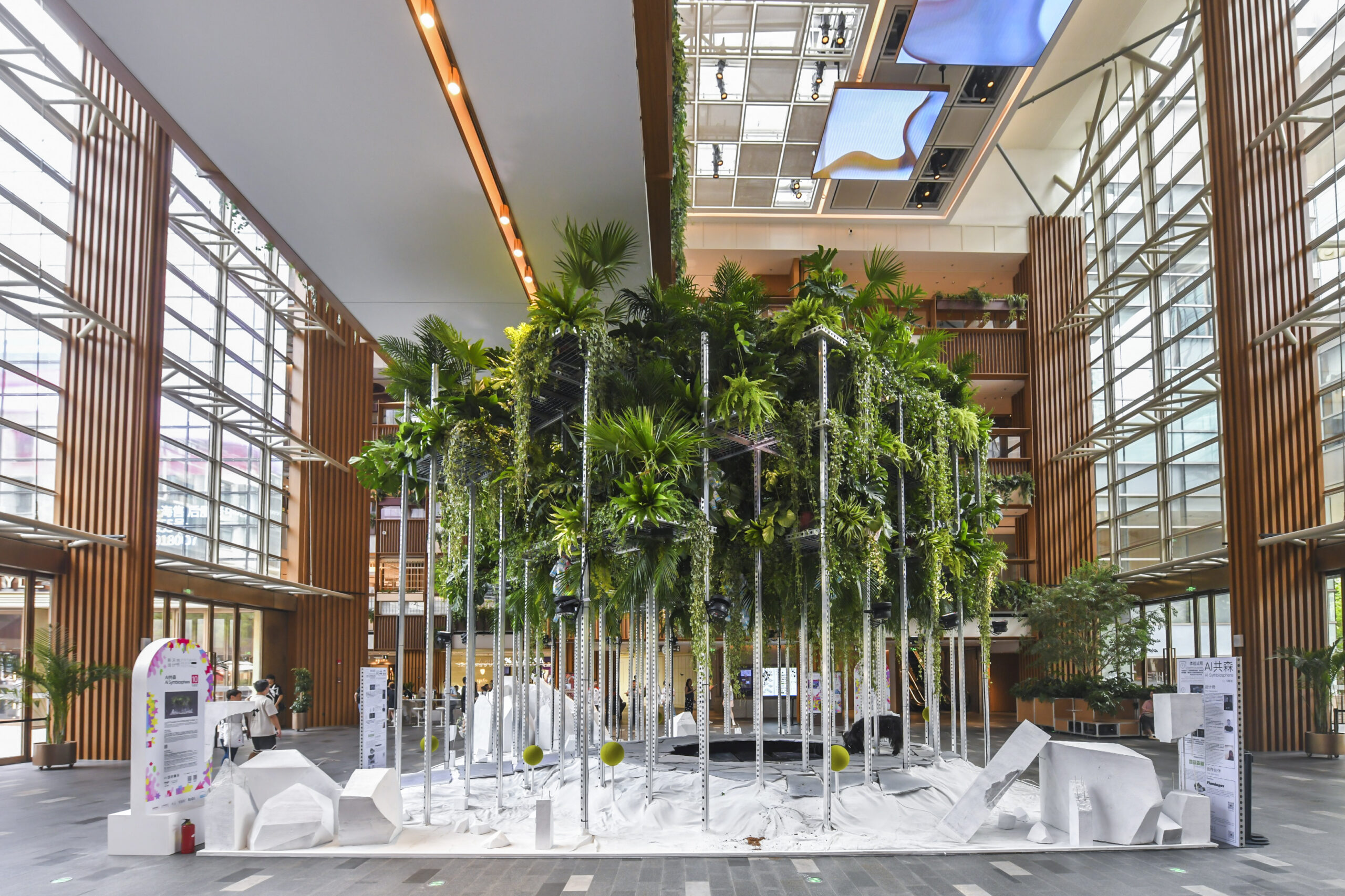 Our world is facing a major challenge: the depletion of the Earth's limited resources demands urgent attention and action. The AI Symbiosphere installation at the Xintiandi Design Festival, aims to inspire reflection on the crucial relationship between humans, nature and animals. How can we shape our coexistence with nature in the future? The installation aims to inspire reflection on the crucial relationship between humans, nature and animals.