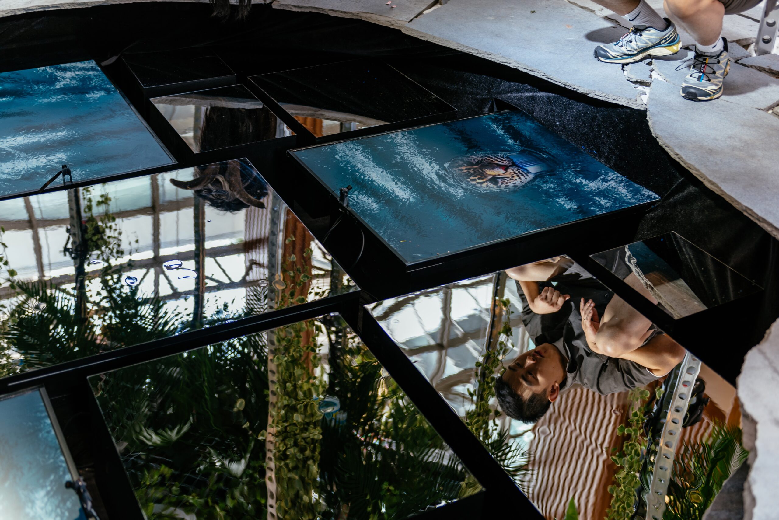 When visitors visit the installation, its reflection on the digital water surface is transformed into an animal image.