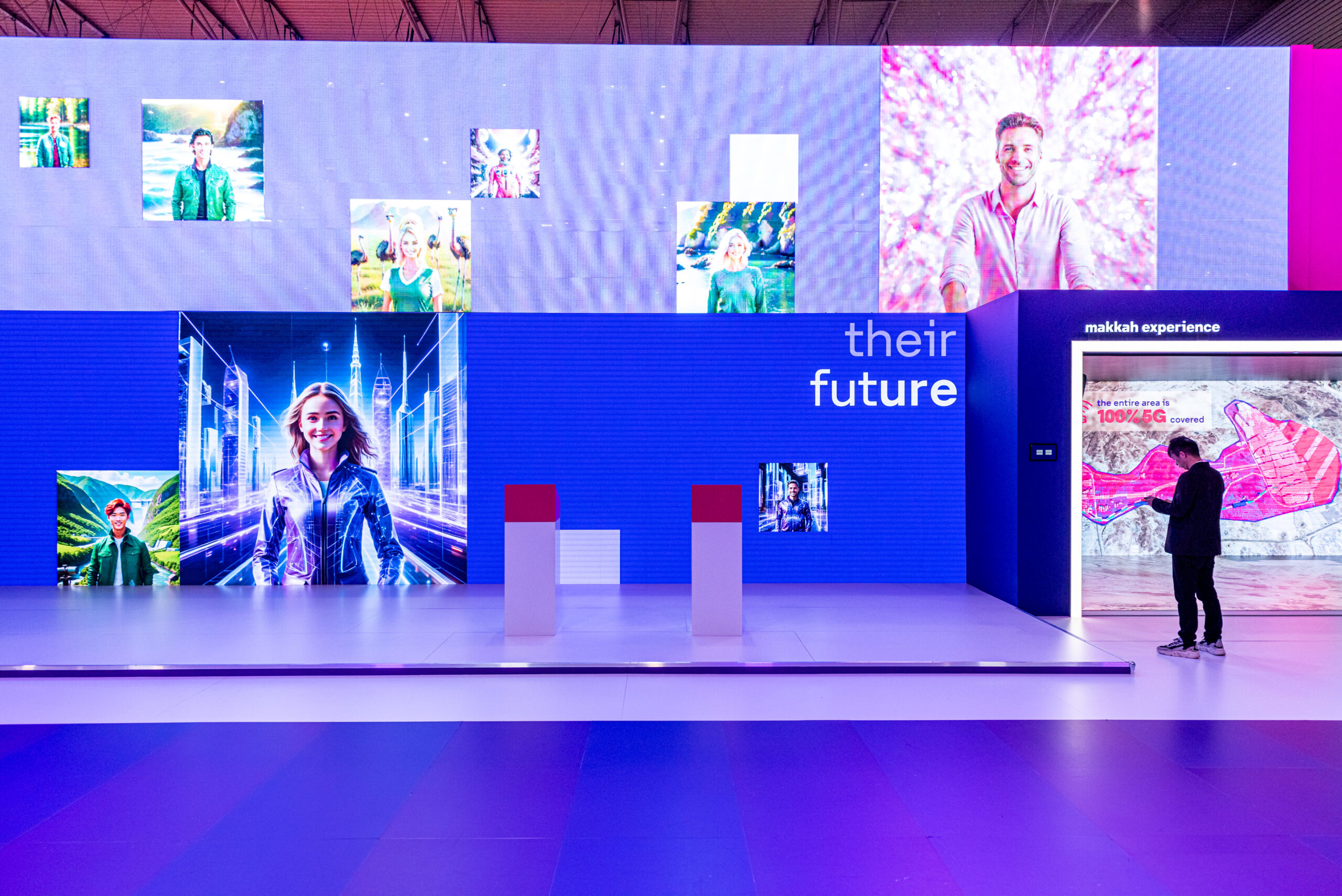 This setup not only highlights stc's technological advancements but also emphasizes its commitment to a tech-enhanced future, aiming to inspire attendees to imagine their futures intertwined with digital progress.