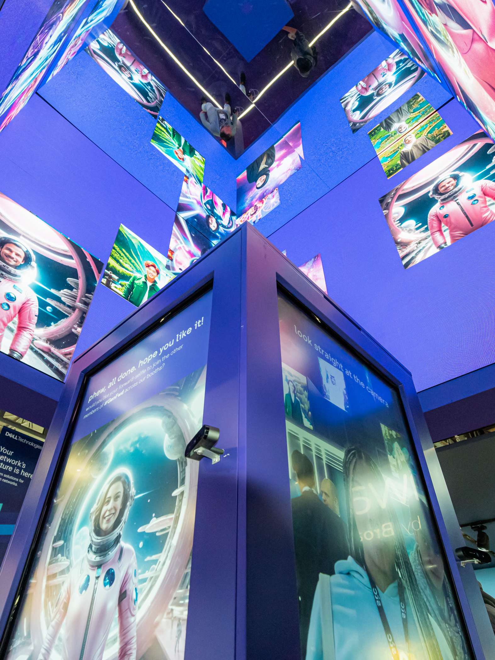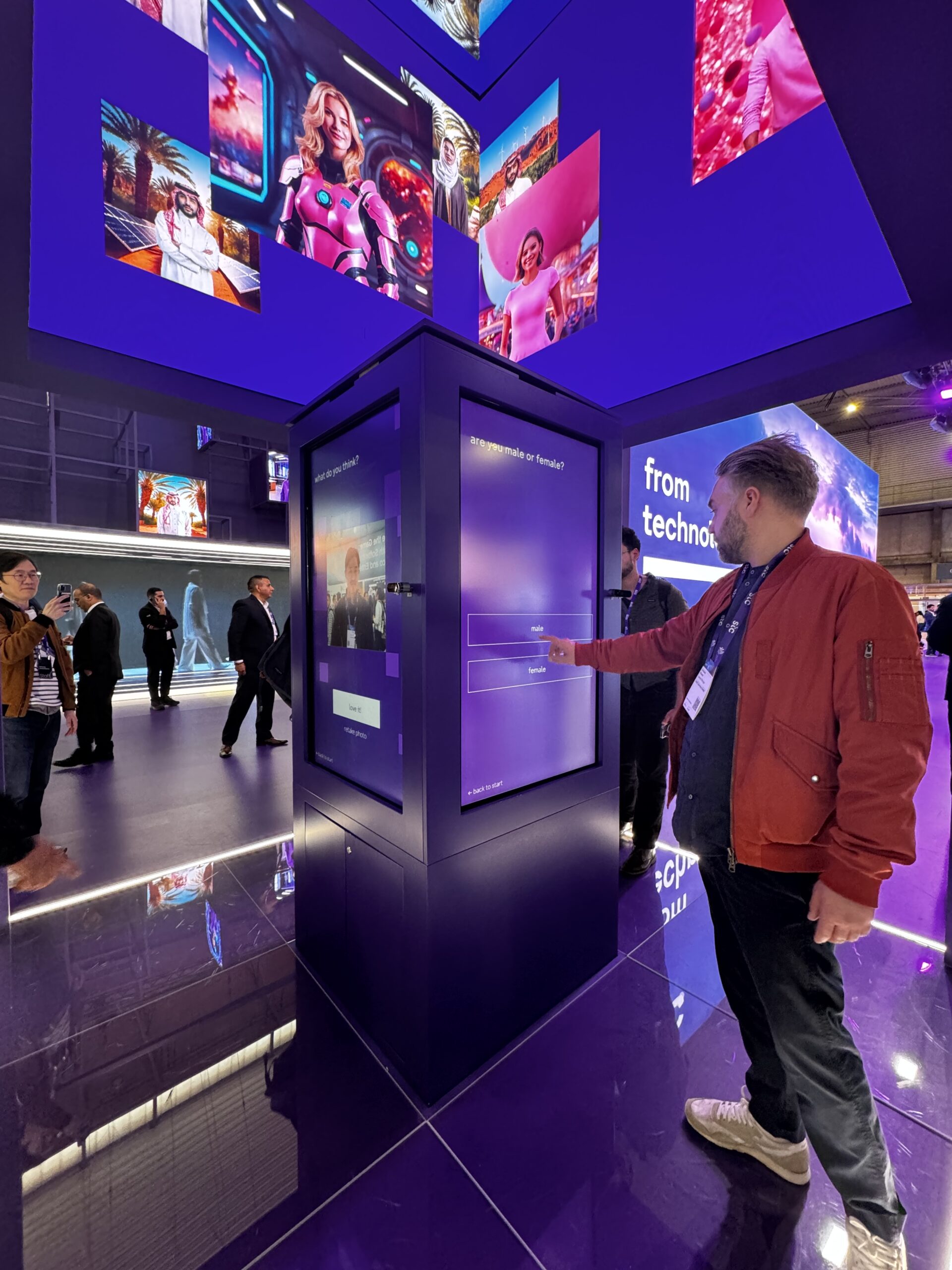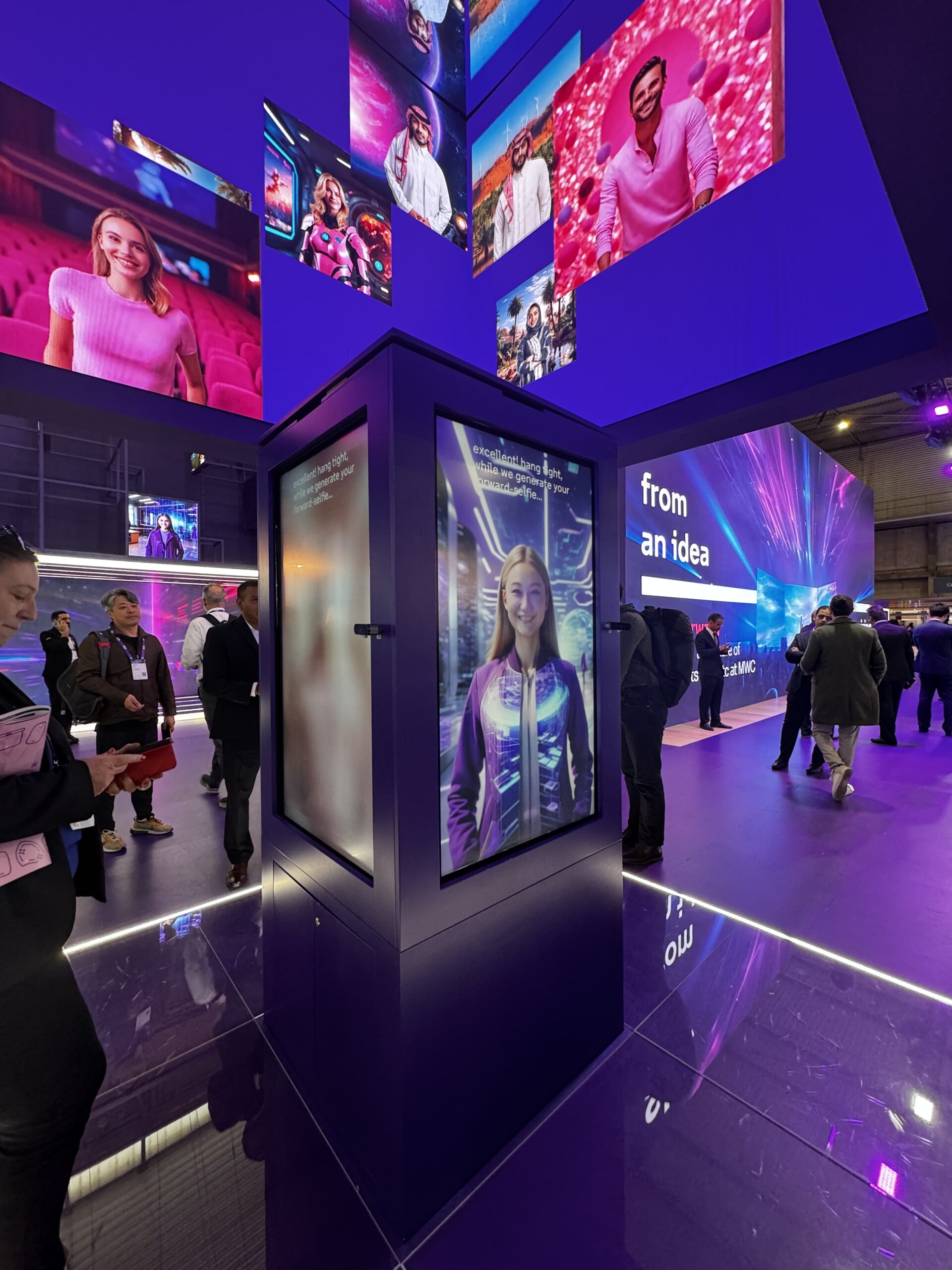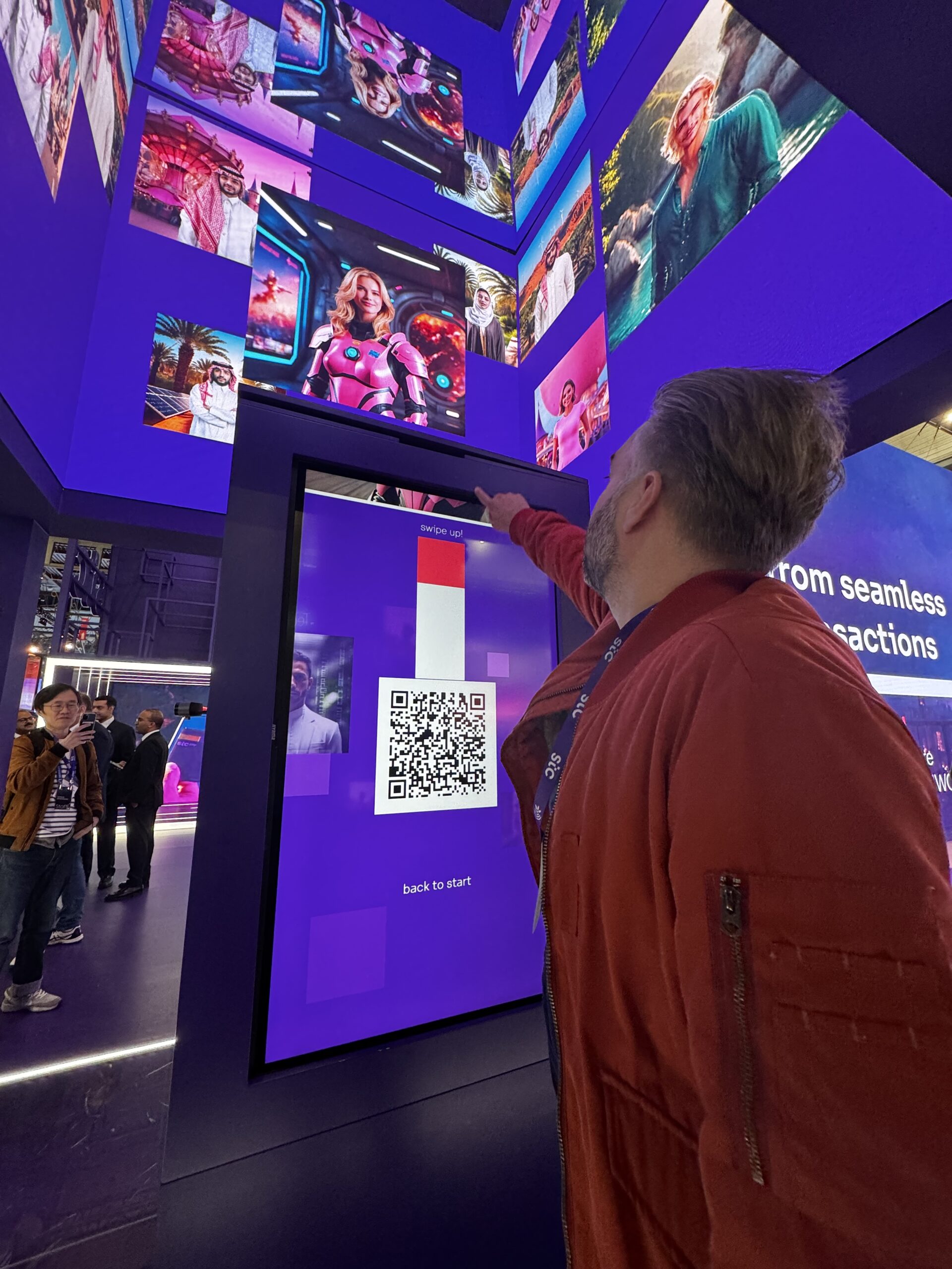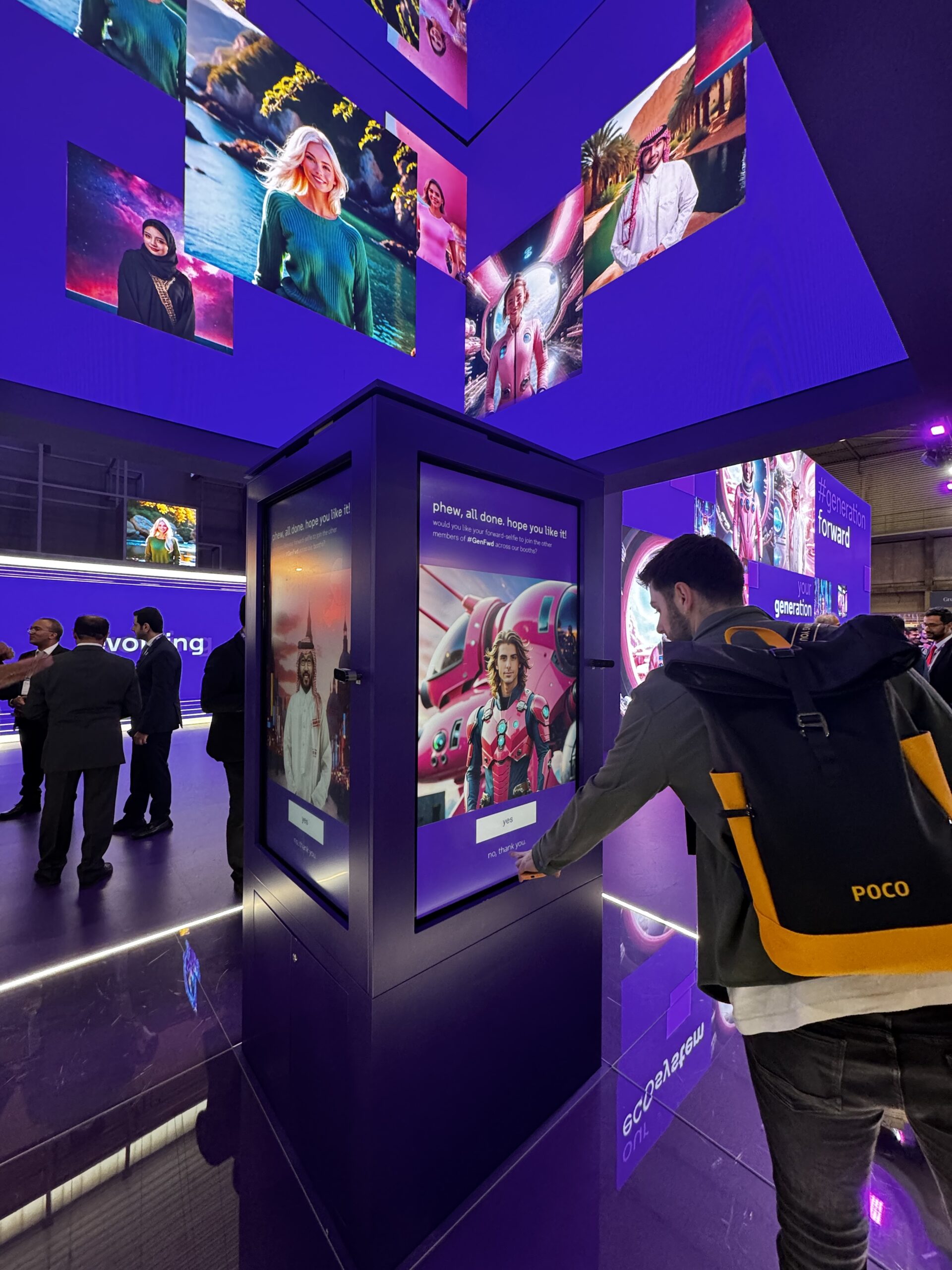 At the heart of the stc booth is the AI Cube, an interactive centerpiece that connects the exhibition space with the digital artwork displayed on a massive LED wall. Under the theme #generationforward, this innovative feature allows visitors to create a digital persona from a simple selfie, which then becomes part of a larger digital ecosystem displayed across the booth.