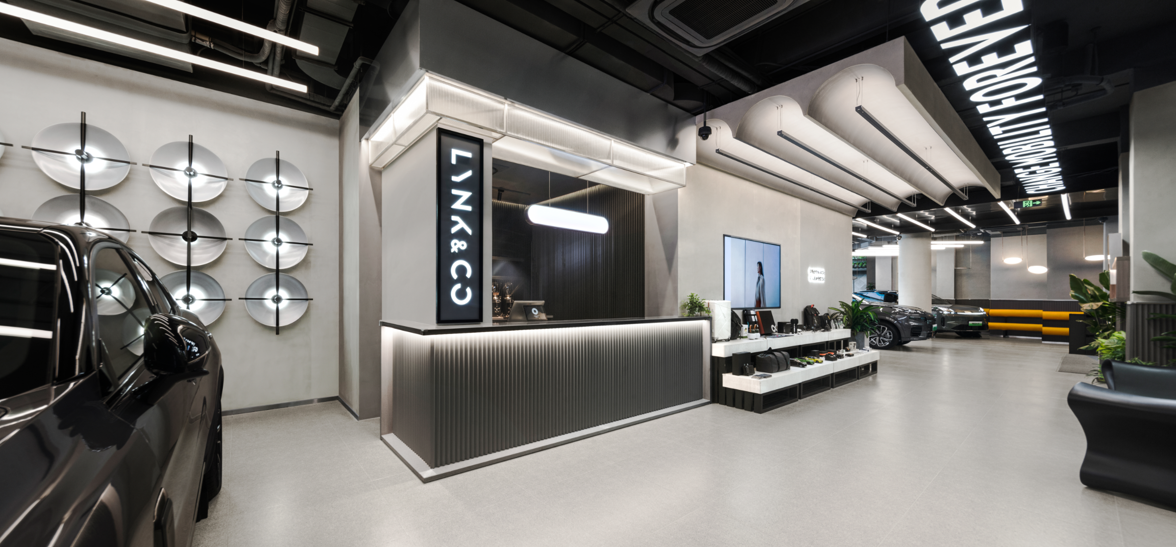 Cars are only used 4% of the time, making car ownership an inefficient use of resources. To disrupt the traditional automotive industry and promote sustainable mobility, Lynk & Co. offers affordable and accessible vehicles designed for the modern world. As part of this mission, we created an innovative showroom concept, redefining what a showroom can be.