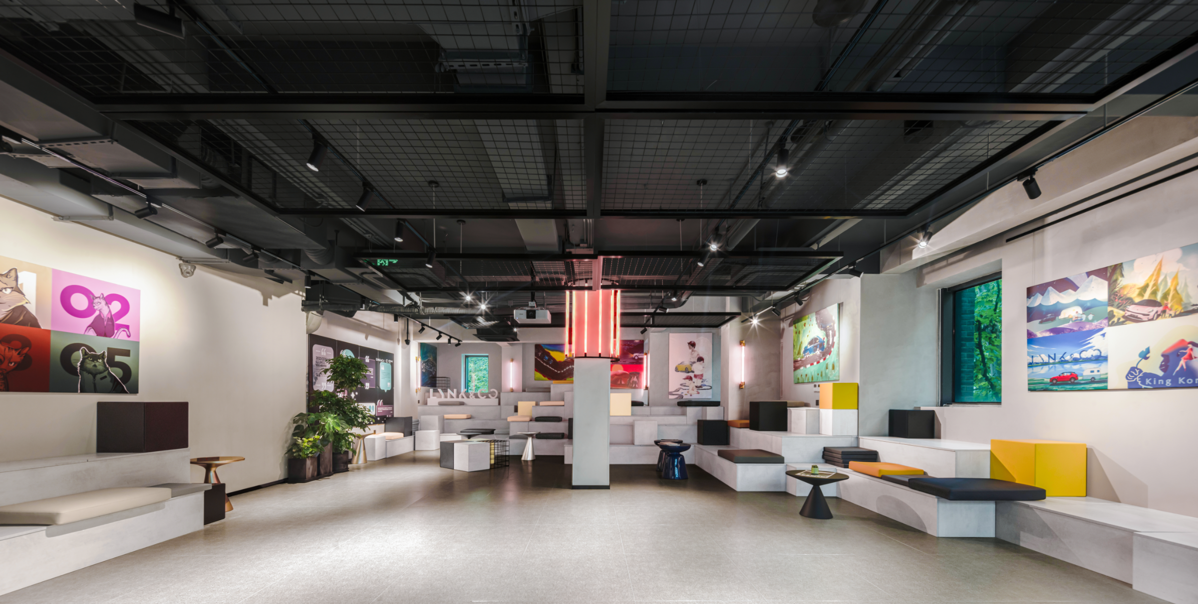 This innovative space integrates diverse urban elements into a seamless flow from a café to co-creation spaces, enhancing retail experiences while promoting a lifestyle of shared experiences and fostering community interaction. The design subtly introduces Lynk & Co’s vehicles, advocating for a sustainable, flexible, and interconnected mobility solution, encouraging active participation in a progressive mobility movement.