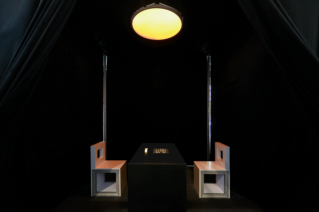 The act of passing through the black fabric curtain constitutes a micro-ritual. Within this enclosed space of less than six square meters, sensory deprivation is achieved through physical isolation techniques (sound-blocking headphones, light-absorbing textiles), thrusting the participant into a pre-digital mode of interaction.