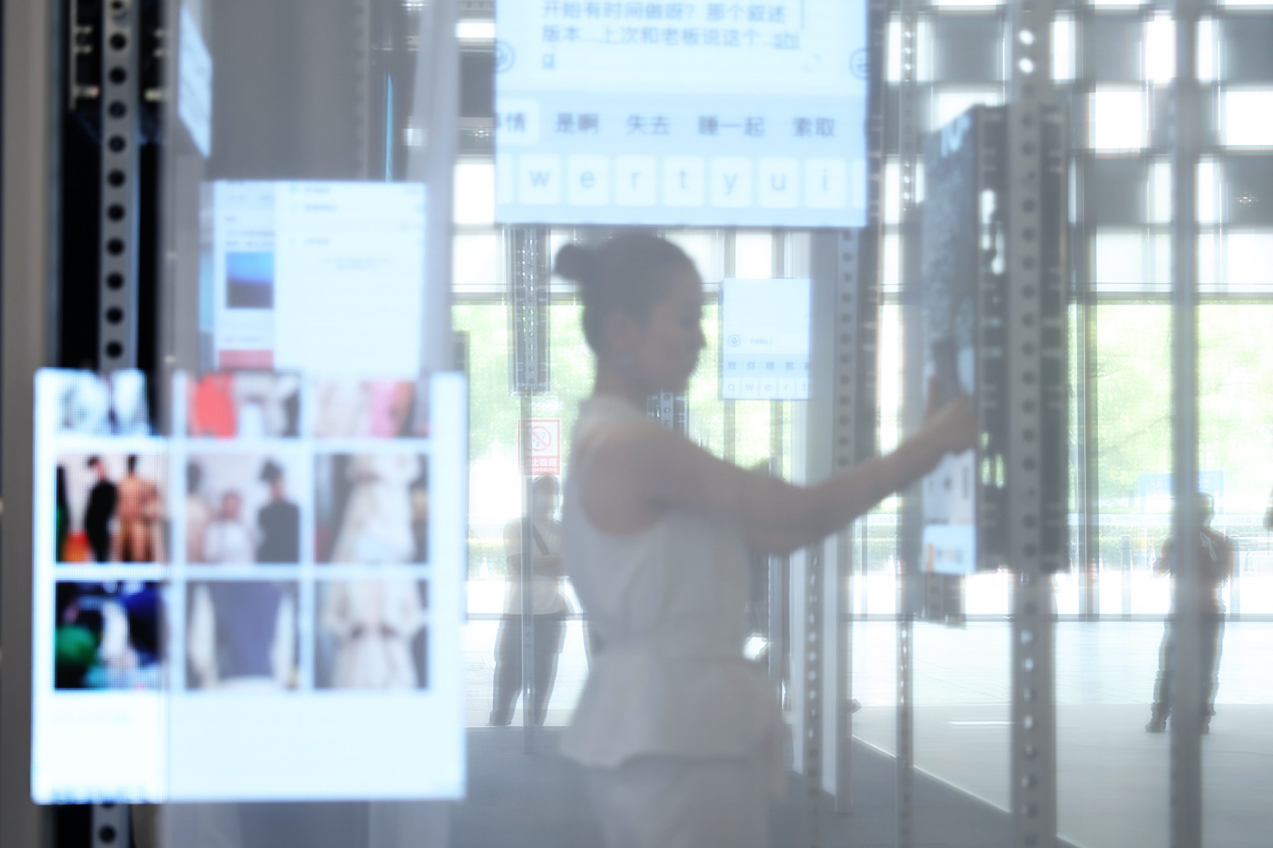This space functions as a mirror, forcing viewers to confront their unconscious physical responses to daily technology use: rapidly shifting pupils, conditioned reflexive swiping gestures, and transient mental paralysis induced by information saturation.