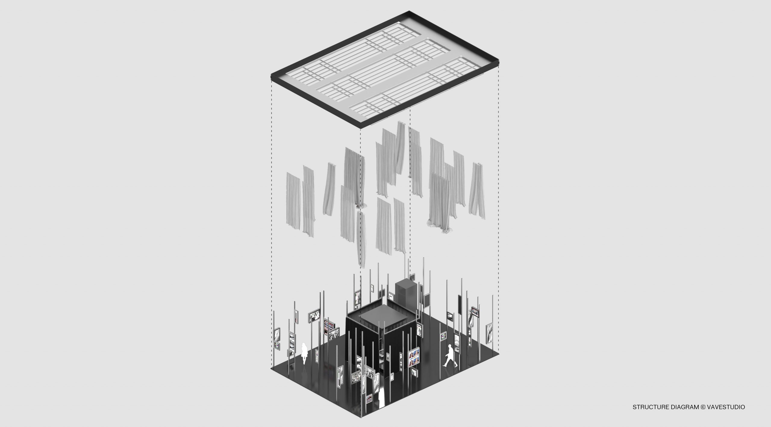 Naming the project "Institute," VAVE constructs the exhibition space as a micro-societal laboratory: an external "jungle" composed of aluminum alloy frames and fragmented LED screens metaphorically represents the systematic siege of human attention by technological infrastructure.