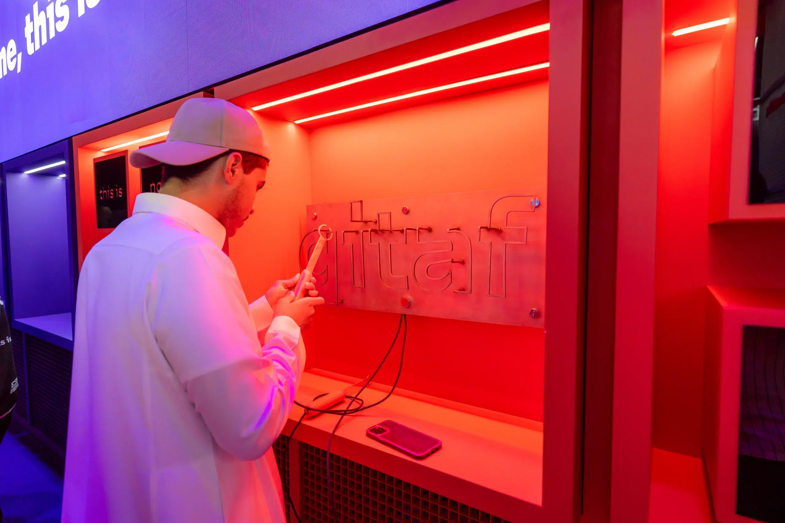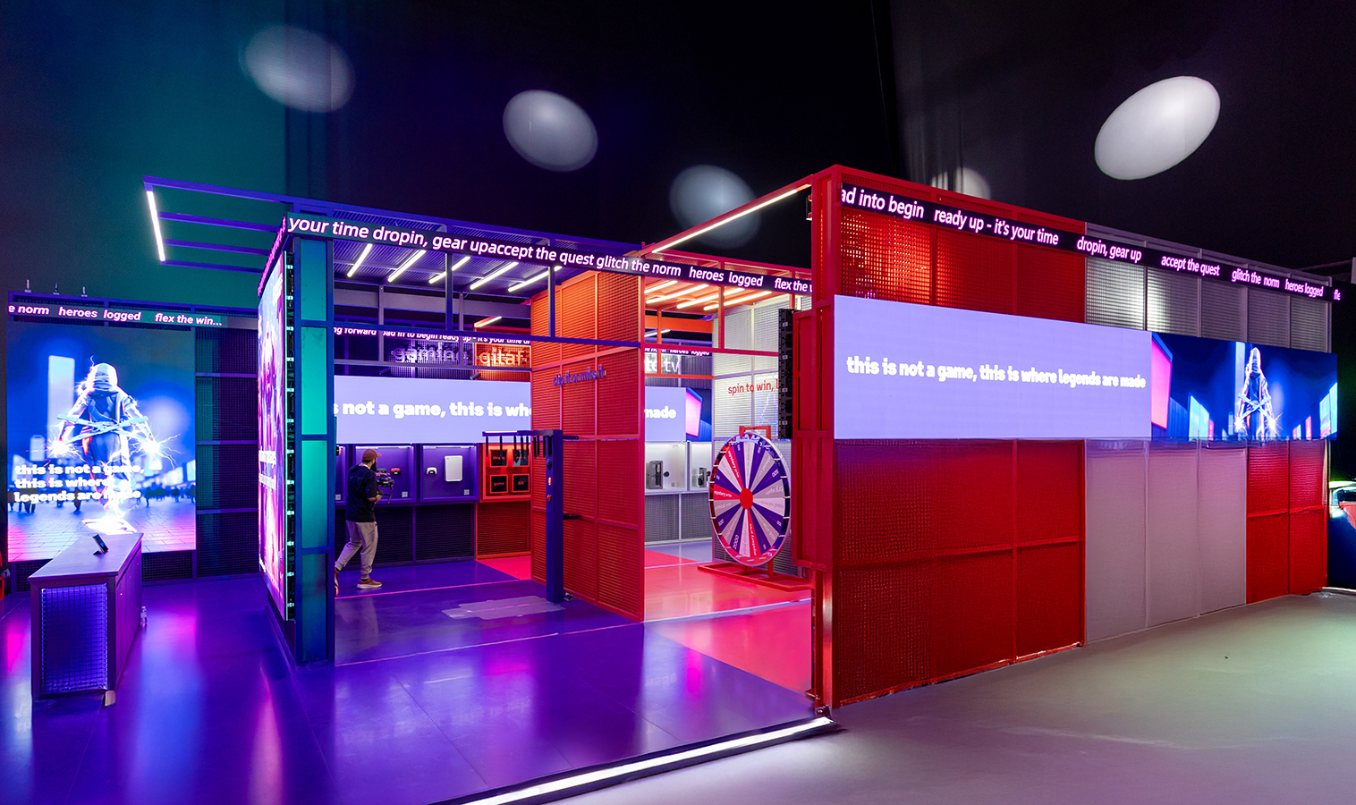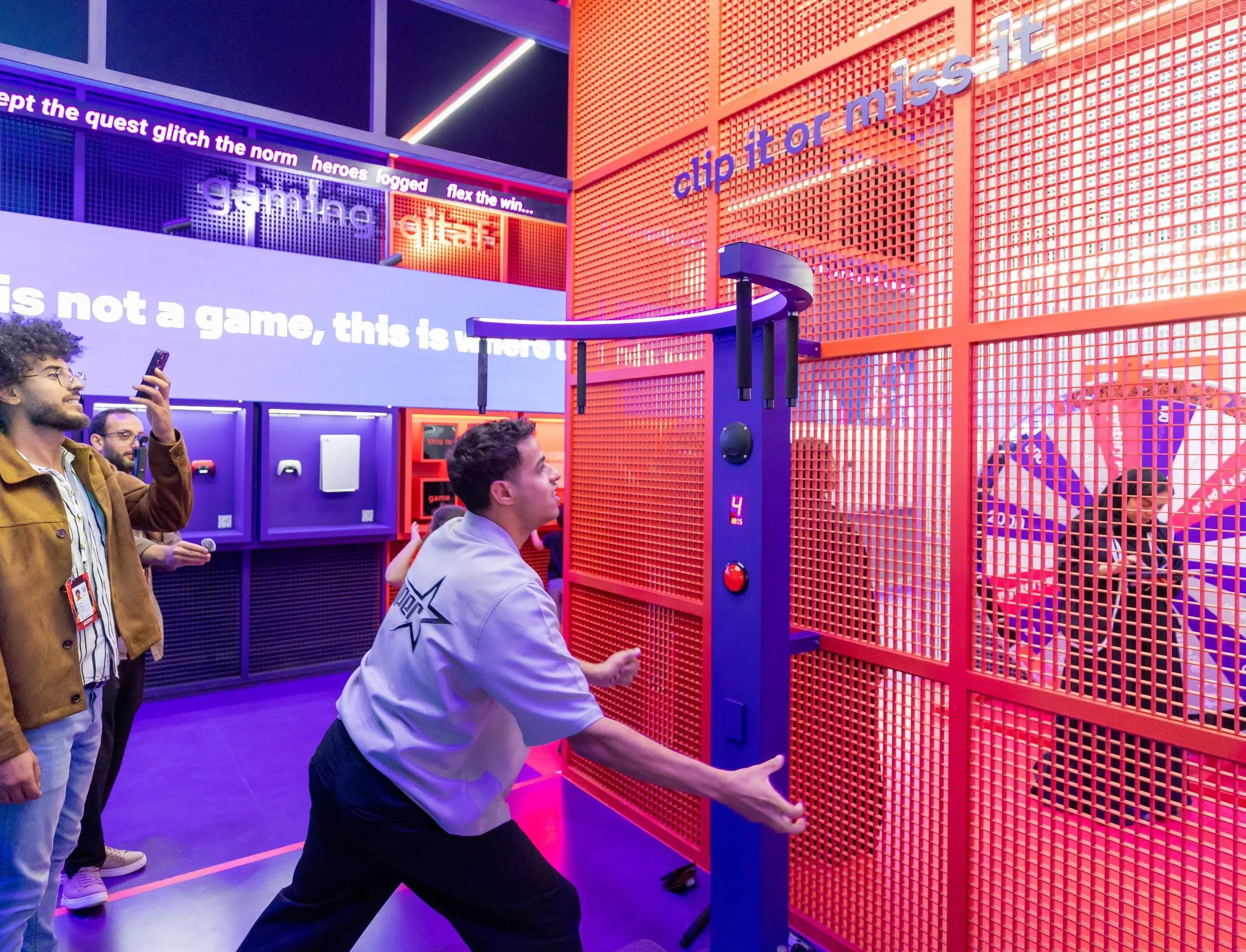 a high-energy playground locating in the central Gaming Hall, designed around three key zones, fast-paced Gaming zone, reimagined loyalty Qitaf Zone, and smart living stc TV zone. Each space invited participation through real-time challenges, digital rewards, and physical engagement.