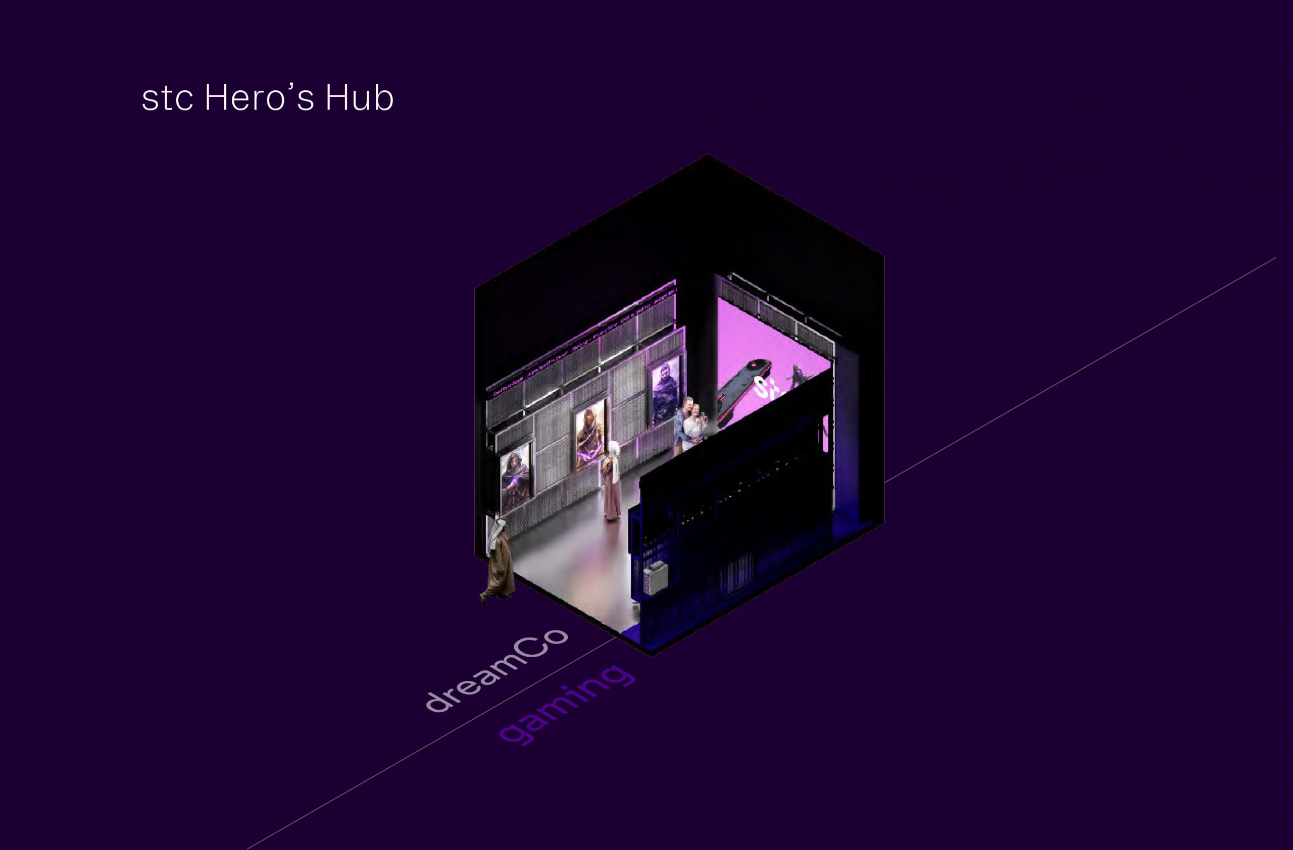 Together with stc, we envisioned a brand space “stc Universe of Heroes ” that turns visitors into protagonists of their own journey. It is an interactive environment that merges physical space and digital identity. Every interaction is designed as a step on a hero’s path. Anchored in gamified storytelling, we created a dynamic world where digital identity is born, evolves, and connects.